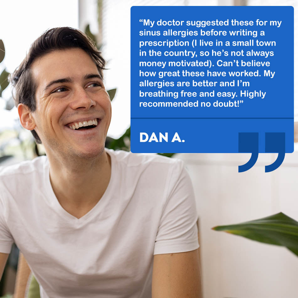 "My doctor suggested these for my sinus allergies before writing a prescription (I live in a small town in the country, so he’s not always money motivated). Can’t believe how great these have worked. My allergies are better and I’m breathing free and easy. Highly recommended no doubt!"